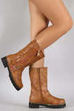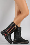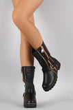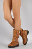 These edgy boots feature a zipper trims on shaft, instep buckle strap detail, rounded toe, lug sole, and block heel. Finished with cushioned insole, soft interior lining, and full-length side zipper closure for easy on/off.