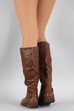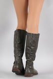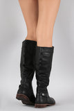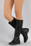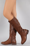 These boots feature a round toe silhouette, studded strap detail, stitching accents, and block heel. Finished with cushioned insole, soft faux fur interior lining, and full-length side zipper closure for easy on/off.