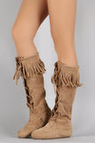 These stylish fringe starting from the cuff of the boot draping down. Finished with lace up on the front for closure.