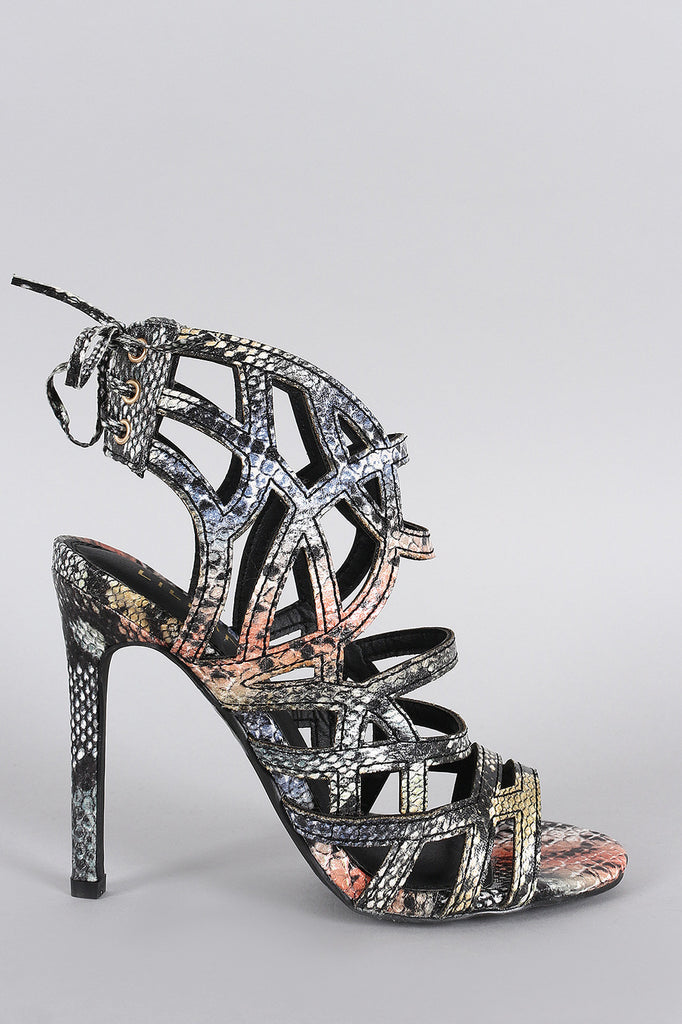Liliana Snake Strappy Back Corset Lace Up Stiletto Heel