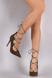 This beautiful lace up design, and wrapped stiletto heel. Finished with lightly padded insole for comfort.