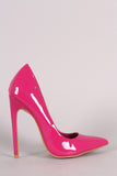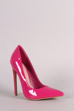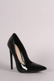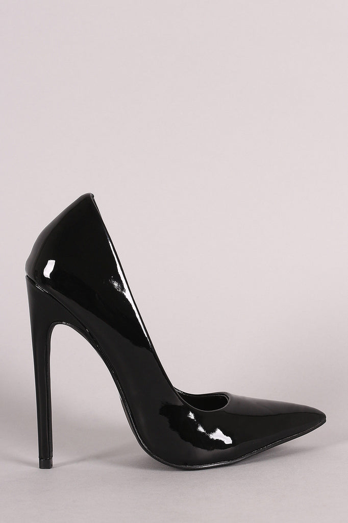 This chic pump features a glossy patent upper, pointy toe silhouette, scoop vamp, and wrapped stiletto heel. Finished with a lightly cushioned insole for comfort and easy slide style.
