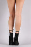 This stunning pointy toe silhouette, front cutout design with lace-up detail, and stiletto heel. Finished with a lightly padded insole and back zip-up closure.