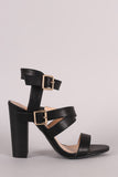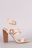 This fabulous single sole heel features an open toe silhouette, one band across vamp, lightly padded insole, double ankle strap with buckle fastening, cross strap and stacked chunky heel.