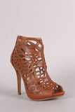 This gorgeous heel features a caged construction with butterfly wing cutout design, peep toe silhouette, and wrapped stiletto heel. Finished with a lightly padded insole and rear zip-up closure for convenience.