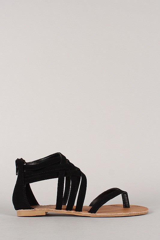 Dare to be different in these stylish  flat sandals . Features strappy caged design at vamp, open toe front, stitching accents, and finished with rear zipper closure for easy on/off.