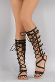 This unique  sandal  features an open toe silhouette, strappy construction with buckles accent, corset-style lace up closure, and lightly padded insole for comfort.