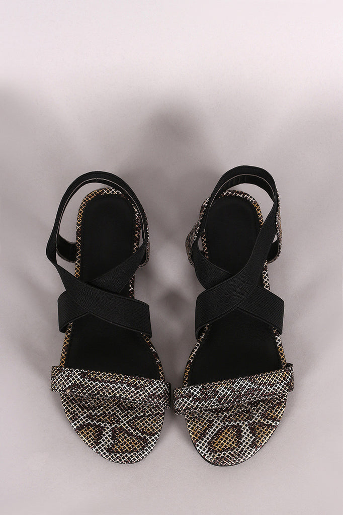 This glamorous  snake-pattern  fabric footbed and vamp strap. Finished with a lightly padded insole.