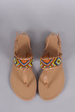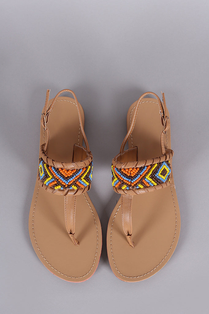 This charming thong  flat sandal  features a multicolor beaded instep strap, t-strap construction, whip stitching details, and adjustable slingback strap with buckle closure.