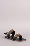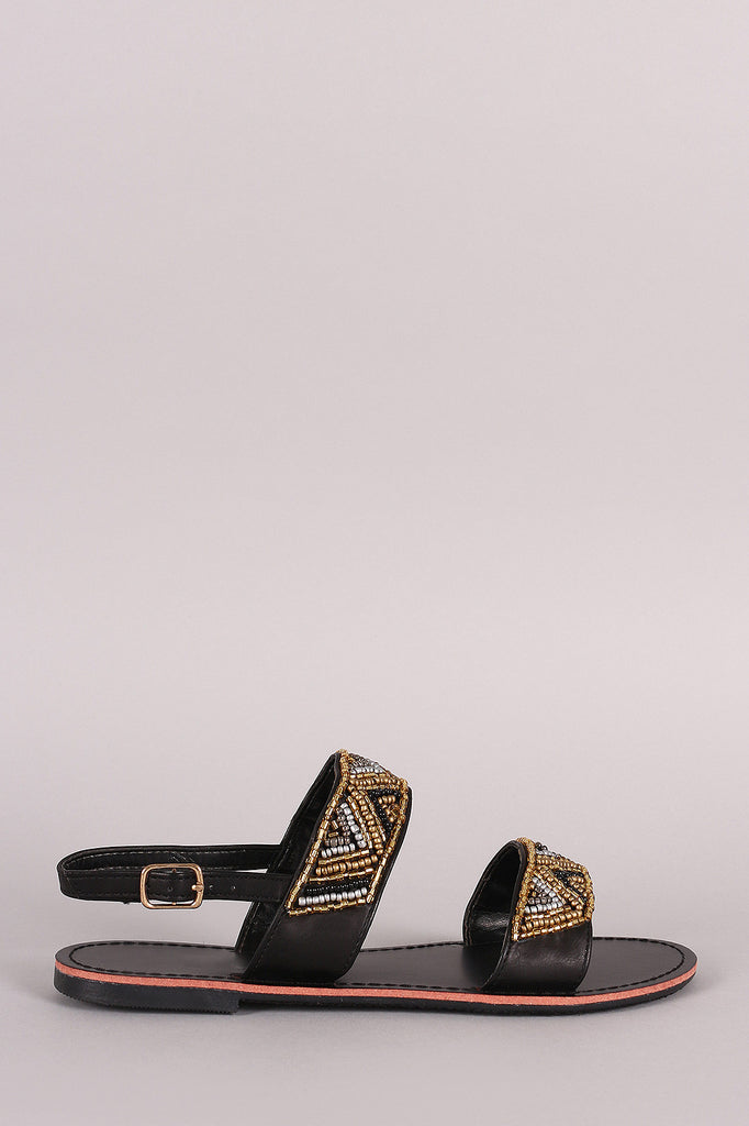 This gorgeous  flat sandal  features an open toe silhouette, double band with multicolor beads embellishment, and adjustable slingback strap with buckle closure.