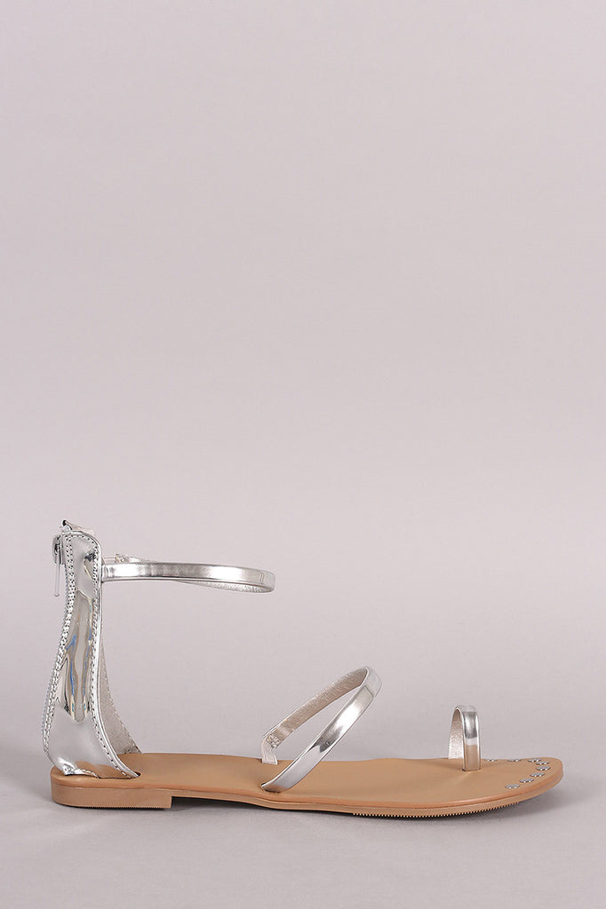 This fashionable toe ring  straps  across the ankle and vamp. Includes a shiny metallic design and back rear zipper closure for easy on/off.