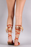 These Laces are designed to wrap around the leg and finished with faux feather tassels.