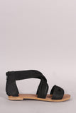 This delightful flat sandal features an open toe silhouette, crisscross strap with decorative slashes, woven strap across vamp, lightly padded insole, and convenient back-zip closure.