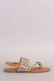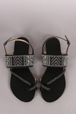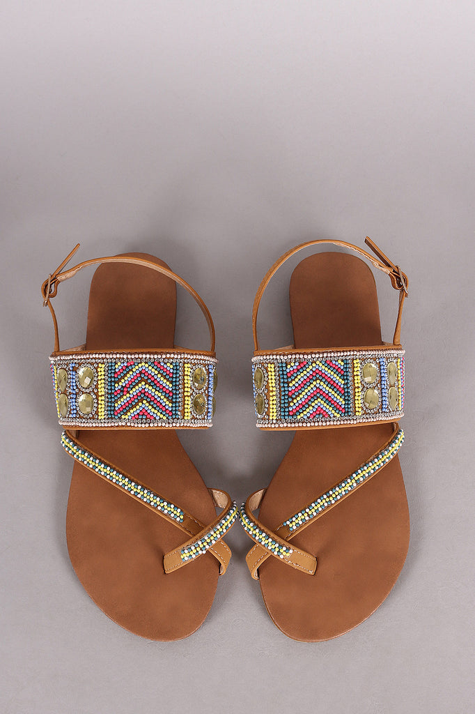 This dazzling flat sandal features a toe loop strap, sparkling rhinestone accent, lightly padded insole, and adjustable slingback strap with buckle fastening.