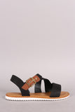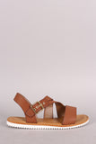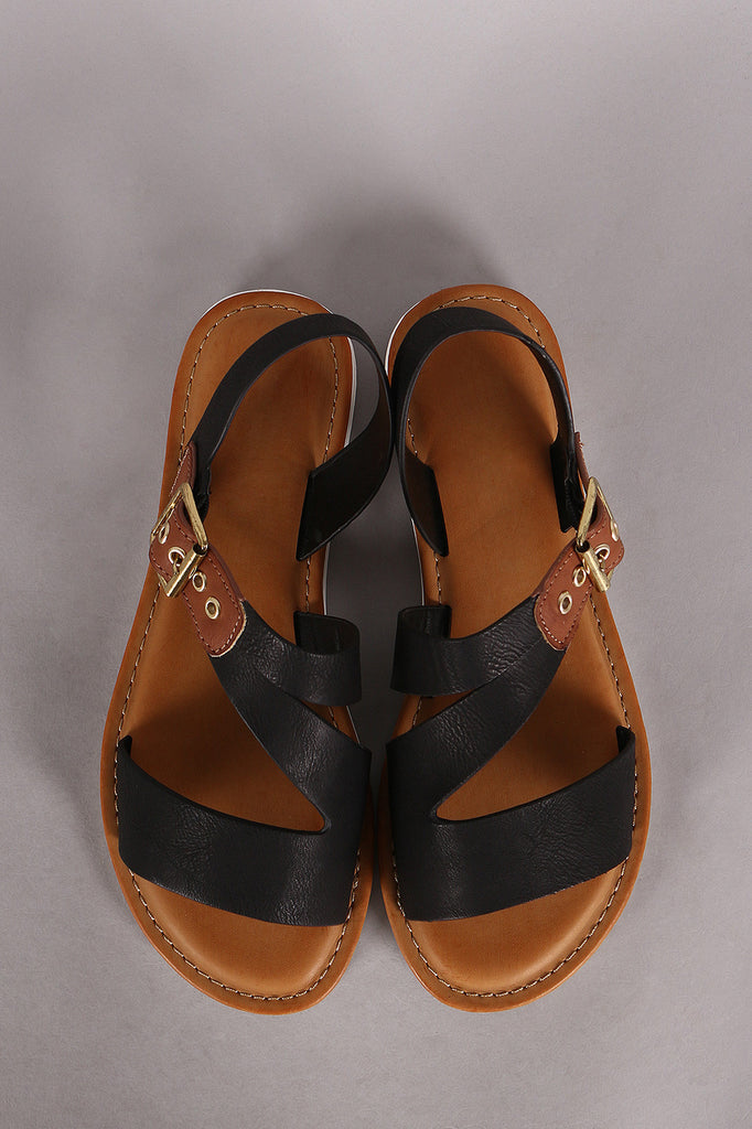 This comfy  sandal  features an asymmetrical strappy design vamp, open toe silhouette, and adjustable side buckle closure. Finished with a contrasting lug sole and lightly cushioned insole for comfort.