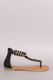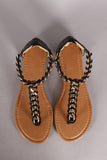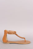 This fabulous  flat sandal  features a t-strap construction, metal link-chain embellishment, lightly padded insole, and convenient back-zip closure.