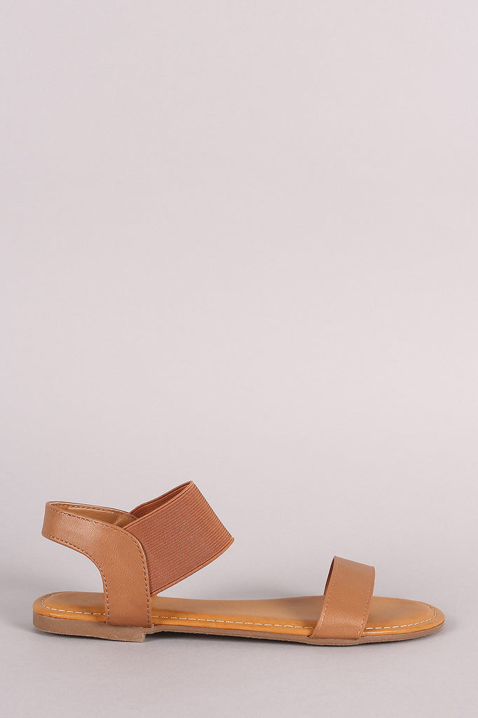 This chic sandal features a vegan leather upper with elasticized front strap, slingback construction, and open toe silhouette. Finished with a lightly padded insole.