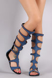 This  flat sandal  features a strappy caged design shaft with contrast piping detail, open toe silhouette, lightly padded insole, and rear zipper closure for easy on/off.