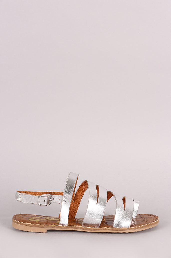 These charming flat sandals features a soft toe strap, zigzag straps construction, lightly padded insole, and adjustable slingback strap with buckle closure.