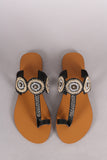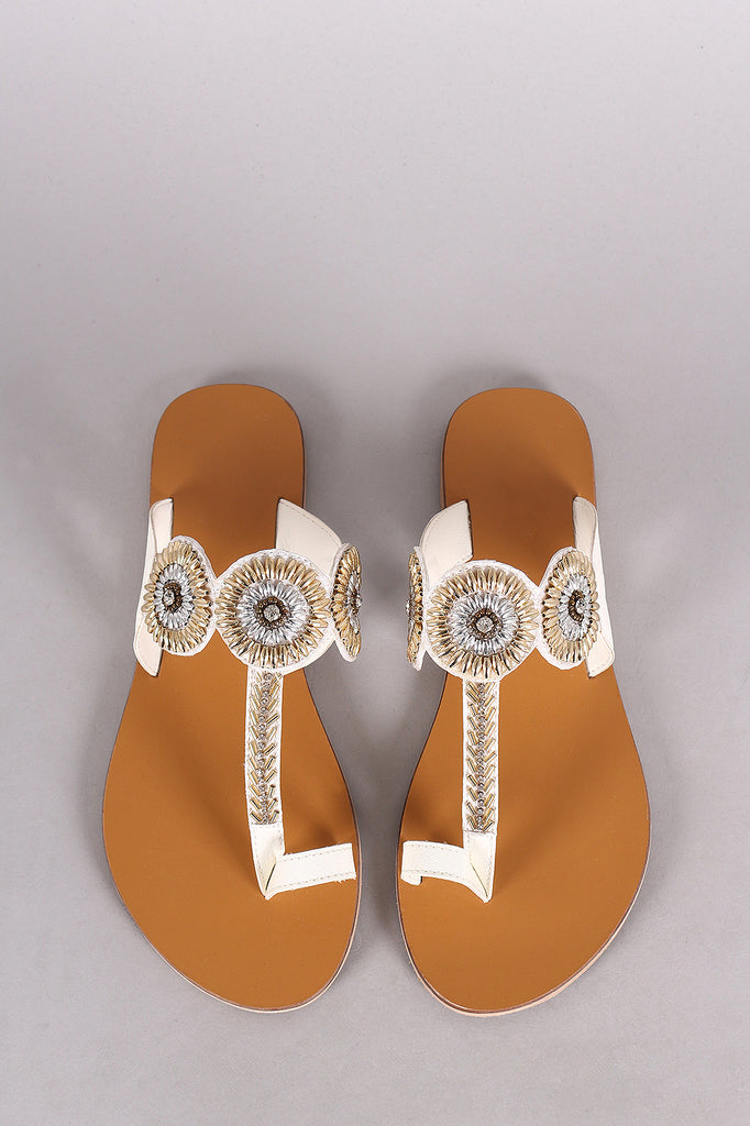 This cutesy flat sandal features a soft toe ring, various shapes and sizes beads embellishment, and easy slip-on construction.