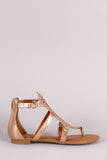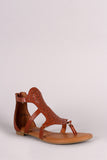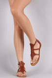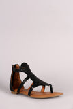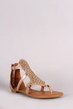 This stylish flat sandal features a T-strap thong construction, floral cutout pattern across vamp, lightly cushioned insole, and rear zip-up closure.