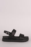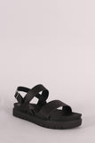 This lug sole , lightly cushioned insole, and adjustable ankle strap with side buckle fastening.