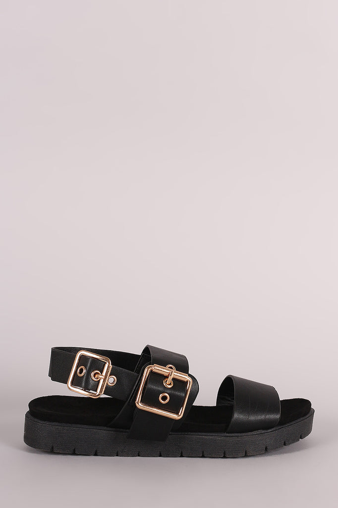 This edgy lug sole , lightly cushioned insole, and adjustable slingback strap with buckle fastening.