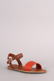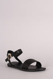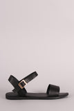 This lightweight flat sandal features an open toe silhouette, one band across vamp, lightly padded insole, and adjustable ankle strap with buckle fastening.