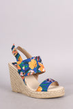 This fabulous floral print fabric upper, double bands across vamp, and open toe silhouette. Also features an espadrille platform, wedge heel, and adjustable slingback strap with buckle fastening. Finished with lightly cushioned footbed for comfort.
