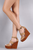 This breezy wedge sandal features an ankle strap with adjustable side buckle fastening, open toe silhouette, and double smooth vegan leather straps. Finished with a wrapped platform wedge heel and lightly padded insole for comfort.