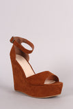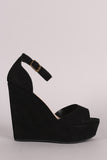 This stylish wedge features a vegan suede upper, one band across vamp, peep toe silhouette, and wrapped platform wedge heel. Finished with a lightly cushioned insole and ankle strap with side buckle closure.