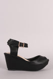 This beautiful wedge features a peep toe silhouette, hidden platform, and wedge heel. Finished with a lightly padded insole and adjustable ankle strap with buckle closure.