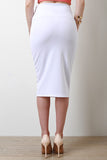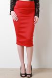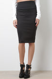 Climb your way to the top of the fashion ladder with the Rising Profile Skirt. Featuring a wide fold waistline and solid fabrication throughout. Accessories sold separately. Made in U.S.A. 95% Cotton, 5% Spandex.