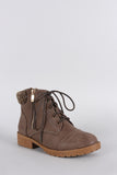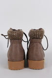Sweater Cuff Lace Up Zipper Combat Ankle Boots