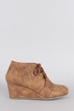 These designer inspired booties have a lace up and wedge heel silhouette; featuring a contrasting shoe lace. Designed with partial quilted sides. Finished with patch stitching on the front and back.