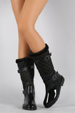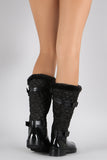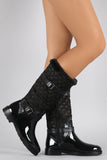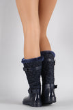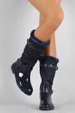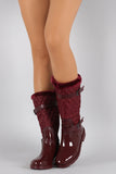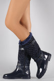 Bamboo Quilted Fur Cuff Mid Calf Rain Boots