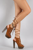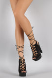 Breckelle Suede Lace Up Peep Toe Platform Mule Heel