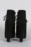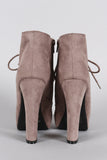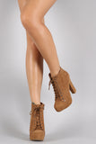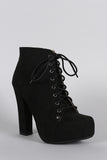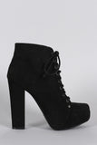 These trendy platform booties feature an almond toe silhouette, lace up front, hidden platform, and wrapped thick heel. Finished with cushioned insole and side zipper closure for easy on/off.