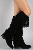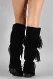 These chic  fringe  panels design shaft, and low block heel. Finished with cushioned insole, smooth interior lining, and full-length side zipper closure for easy on/off.