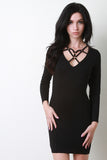 This dress features ringlet cage constructed v-neckline, long sleeves, sculpturing silhouette, princess seam, and hidden zipper fastener at back. Accessories sold separately. 32% Nylon, 63% Cotton, 5% Spandex.