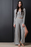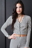 This surplice crop top features smooth stretch fabric, v-neckline, and long sleeves. Accessories sold separately. 96% Polyester, 4% Spandex.