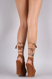 This lovely wedge features a peep toe silhouette, strappy construction with lace up closure, and wrapped platform wedge heel. Finished with lightly padded insole for comfort.