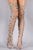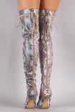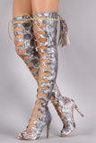 Snake Peep Toe Tassel Over-The-Knee Lace-Up Boots