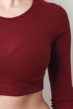 This top features thermal knit fabrication, round neckline, long sleeves, and a crop hemline. Accessories sold separately. Made in U.S.A. 97% Rayon, 3% Spandex.