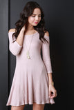 Thermal Cold Shoulder Quarter Sleeve Trapeze Dress