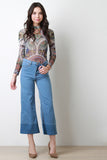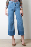 Soft denim culottes with four pockets, belt loops, and single button and zipper fly and featuring wide cropped legs with paneled raw hems. Accessories sold separately. 97% Cotton, 3% Spandex.