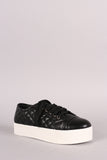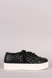 This playful sneaker features a vegan leather upper with quilted silhouette, rounded toe, lace up construction, fabric inner lining, and cushioned insole for comfort.
