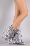 Snake Print Twist-Lock Fold Down Shaft Wedge Booties