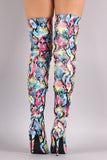 Rainbow Python Lace-Up Stiletto Over-The-Knee Boots