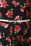 This flattering plus size fit & flare flower bloom print, scoop neckline, and sleeveless design. Dress come with removable tuxedo bow accent vegan leather belt. Other accessories sold separately. Made in U.S.A. 96% Polyester, 4% Spandex.
